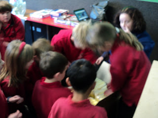 Going around the classes to explain what they can find in their team emergency bins.